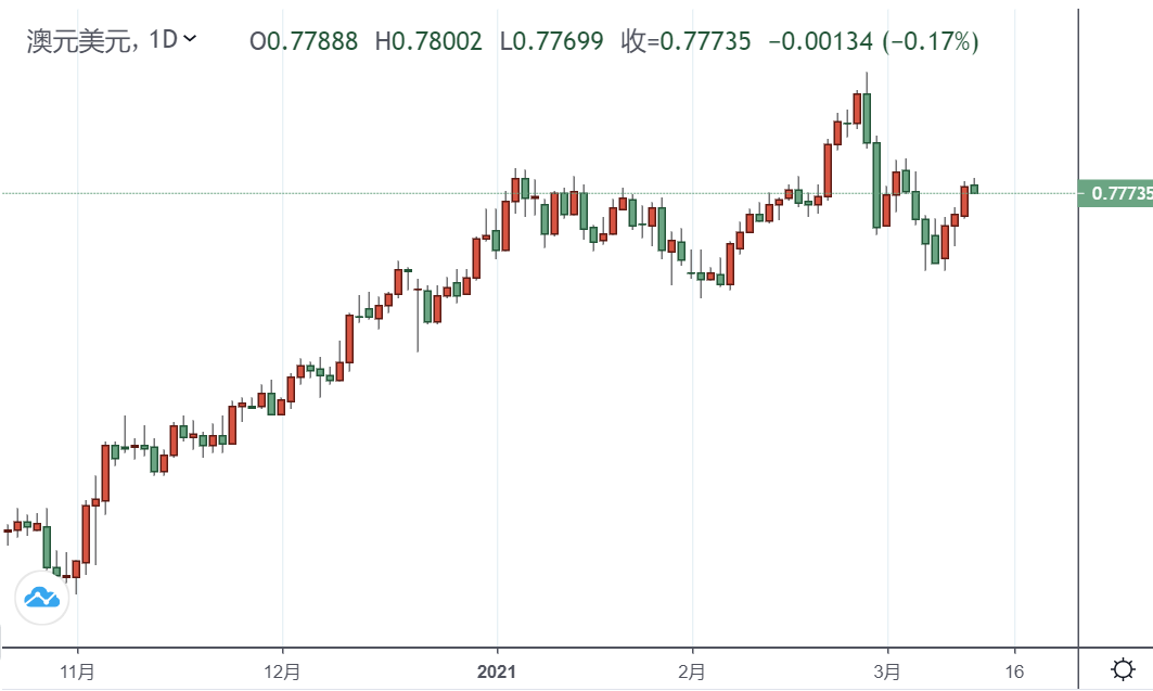 市场基本面分析 市场对美国经济相对更快地从流感大流行中复苏的押注不断增加,继续支撑美元。在疫苗接种速度惊人以及美国大规模财政刺激计划获得通过的背景下,投资者对美国经济前景仍持乐观态度。这反过来抑制了澳元/美元对的进一步上涨,反而促使澳元/美元在0.7775附近出现一些抛售。 目前,因为投资者似乎不愿在本