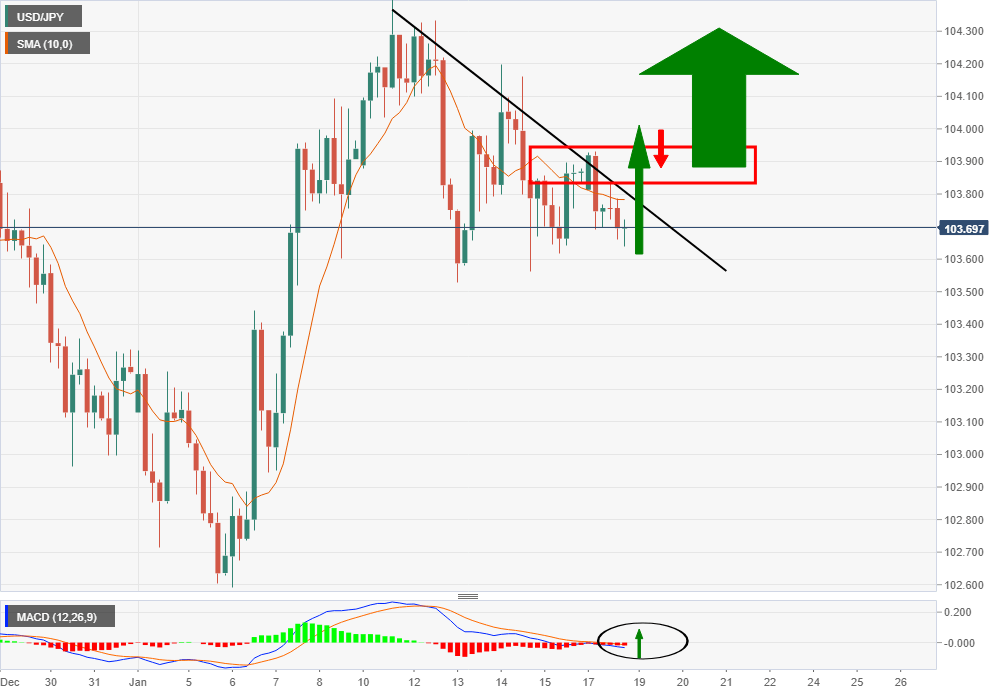 美元/日元多头等待盘整突破,多头已经控制住局面,将价格推向底线。 之前的分析 前面的分析说明了临界阻力。 4小时图 看涨者现在需要克服近期高点的阻力结构,从高点止损可以移动到收支平衡。