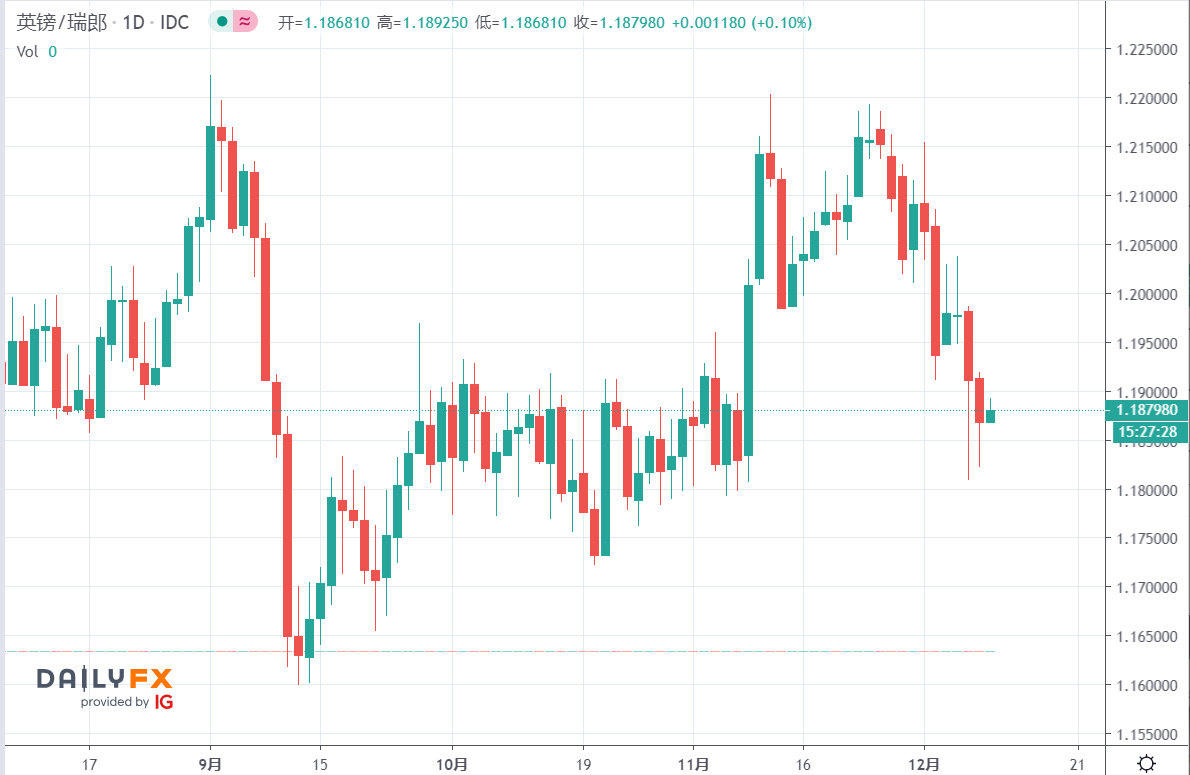 近期在无协议脱欧、硬脱欧风险的担忧下,瑞郎获得了投机者的青睐。以下英镑/瑞郎、?/瑞郎走势分析如何? 英镑/瑞郎 英镑/瑞郎的走势一直受到脱欧消息的强烈推动,自11月底高点以来已经下跌超3%。本周已经两次测试始于3月低点以来的上升趋势支撑线,表明交易员不愿意在潜在的上行趋势中认输。 英镑/瑞郎的短期下跌