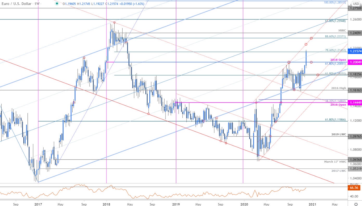 欧元自11月低点以来兑美元已经上涨近5%,汇价在12月开盘初便刷新了在7月创下的年内高点。英国脱欧本周似乎由“隧道”进入另一个“隧道”,英镑/美元周四(12月3日)进一步反弹触及1.3500水平。 欧元/美元 周线图上显示,欧元/美元自连接2020年初高点的上升趋势线/阻力线遇阻回落后跌至关键支撑位1.16附近,随后自该支