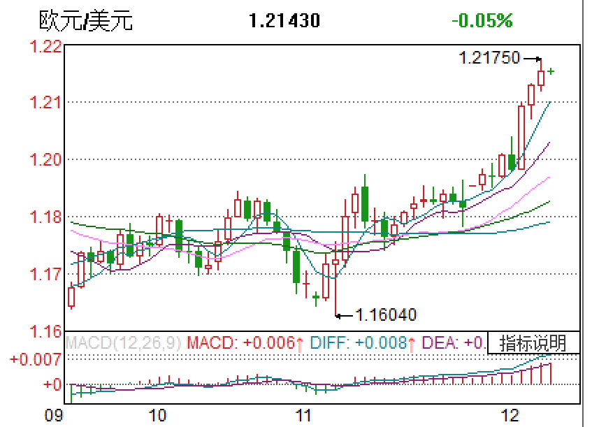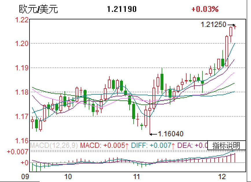 市场基本面分析 德国失业人数意外下降,有助于降低失业率。欧元区制造业I得到上修,与通胀下降相抵销。似乎是美国双赤字(经常账户和财政赤字)激增,打压美元美元。摩根士丹利分析师预计,美元未来12个月内将下跌10%,美元疲软对全球经济构成利好。 预计欧洲央行将在12月10日的会议上宣布更多刺激措施。但欧央行已经