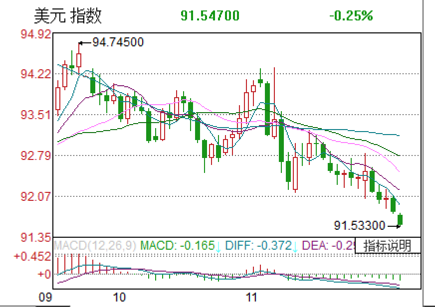美元指数仍处于压力之下,目前正徘徊在2020年低点91.60附近。本周初,美元指数连续第二个交易日下跌,在投资者持续偏好风险相关资产的背景下,该指数仍处于低迷状态。 市场参与者继续抛售美元,而对未来几个月强劲复苏的预期以及对美国额外刺激的乐观情绪不断上升,尤其是在民主党人乔·拜登赢得选举之后。 消息面来看