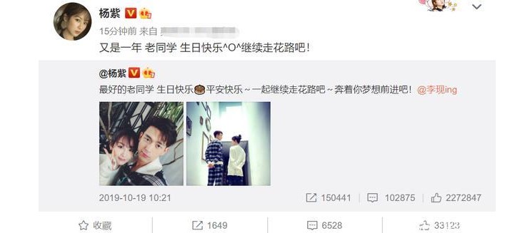 一般而言,娱乐圈中有明星生日时圈内好友都会公开送上祝福,如今李现生日到来杨紫便在再次送上祝福。众所周知,杨紫李现曾合作《亲爱的热爱的》,之后成为好朋友,每逢一方过生日另一方必定有所祝福。