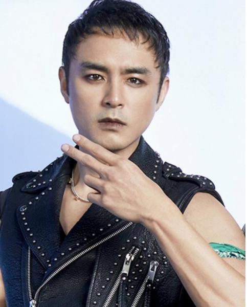 从照片来看明道的烟熏妆比较明显,嘴唇已经发黑,头发看起来也有些油,整张脸都比较深沉,搭配上身的皮马甲,明道的手臂肌肉非常明显。