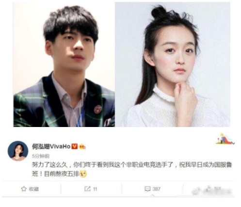 23日,何泓姗发文称:“努力了这么久,你们终于看到我这个非职业电竞选手了,祝我早日成为国服鲁班!目前熬夜五排”,疑似默认和电竞教练胖胖的恋情。