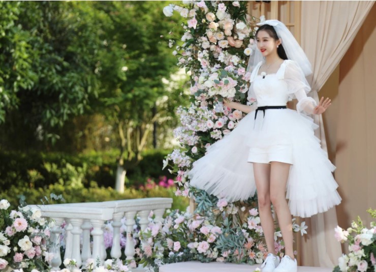 能够看得出来baby当天穿的婚纱是一件裙子款式,盖住了自己的膝盖,而其他的邀请来的几位素人女嘉宾也是穿的婚纱裙,然而现场所有女明星的婚纱造型当中最为特殊的就只有关晓彤了,关晓彤当天婚纱造型穿的是一件短裤。