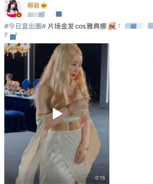 近日,柳岩在个人社交平台晒出自己在片场cos雅典娜的视频。
