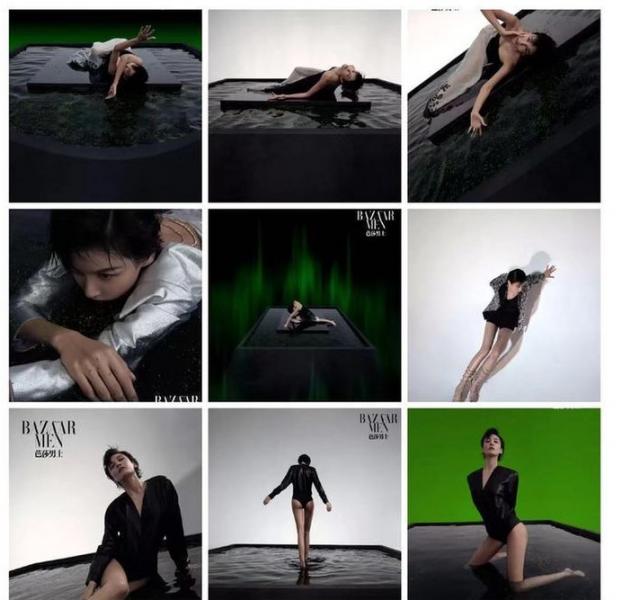 照片中,张蓝心穿着大胆且性感,将暗黑系少女风格很好地演绎出来。