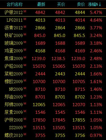 7月21日讯 国内期货市场收盘,商品期货多数上涨,沪银大涨超5.5%,LPG涨超4%,沥青、玻璃等涨超3%,焦煤、沪铅等涨超2%,橡胶、NR等涨超1%,白糖、纸浆等小幅上涨;纯碱、豆一跌超1%,塑料、锰硅等小幅下跌。