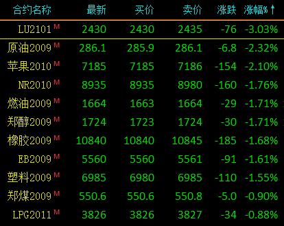 7月31日讯 国内期货市场收盘,商品期货走势分化,能源板块跌幅居前。低硫燃料油跌超3%,原油、苹果跌超2%,燃油、郑醇、橡胶跌超1%;沪铜、沪镍、纸浆小幅是下跌。尿素期货涨超2%,沪锌、铁矿、豆一涨超1%。