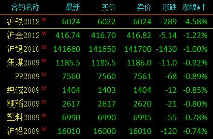 8月13日讯 国内期货市场收盘,商品期货涨跌互,贵金属走低,沪银跌超4%,沪金跌超1%;农产品(8.69 +3.82%,诊股)多数走高,豆油涨超4%,早稻、棕榈、豆二涨超2%,苹果、豆粕涨超1%。