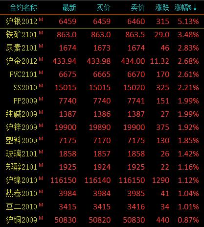 8月18日讯 国内期货市场收盘,商品期货多数收涨,贵金属板块领涨,沪银大涨超5%,铁矿涨超3%,沪金、尿素、PVC涨超2%;纯碱、塑料、玻璃、不锈钢涨超1%。锰硅、原油跌超2%,苯乙烯、淀粉跌超1%。