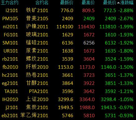 9月21日讯 国内期货市场收盘,商品期货多数收涨,菜油涨超3%,棕榈、豆油涨超2%,沪铅、沪锡、豆二、橡胶、棉花等涨超1%;铁矿跌超2%,沪镍、玻璃、锰硅、尿素、螺纹、热卷等跌超1%。