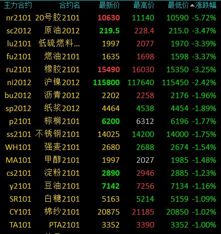 国内商品期货开盘:多数下跌,原油、燃油、20号胶跌超5%