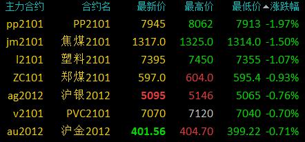 11月5日讯 国内期货市场开盘,商品期货涨跌互现,菜粕涨逾3%,原油、豆粕、橡胶、豆二、焦炭涨超1%;焦煤、塑料、郑煤跌超1%。