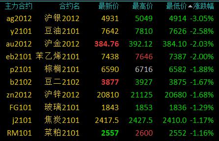 11月24日讯 国内期货市场开盘,商品期货多数下跌,贵金属低开,沪银跌近3%。塑料涨超2%,沥青、焦煤、原油等涨超1%;豆油、沪金、苯乙烯跌超2%,棕榈油、豆二、沪锌等跌超1%。
