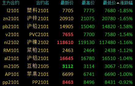 国内商品期货开盘:多数下跌,沪锌、沪铅、沪铝开盘跌超1%