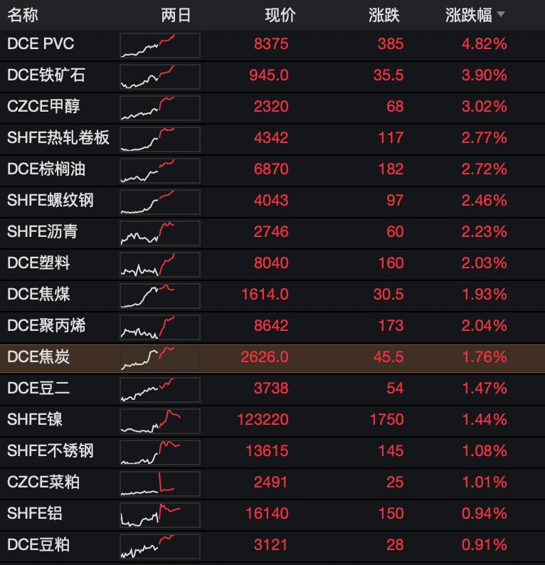国内商品期货开盘:涨多跌少,郑煤期货主力开盘涨超4%