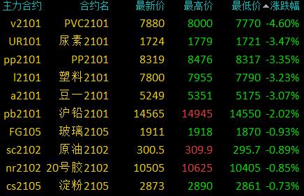 国内商品期货收盘:化工跌幅居前,纯碱涨超2%、PVC大跌逾4%