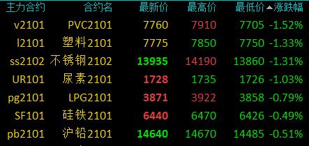 12月16日讯 国内期货市场开盘,商品期货涨跌参半,郑煤、铁矿等涨超2%,螺纹、热卷等涨逾1%,鸡蛋、淀粉、玉米等小幅上涨;SS、塑料等跌超1%,豆油、郑棉等小幅下跌。