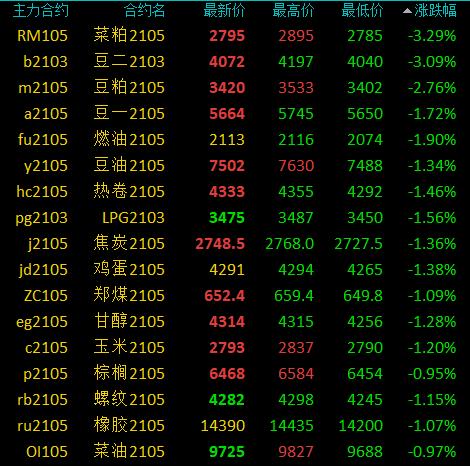 国内商品期货开盘:多数下跌,菜粕、豆二跌超3%