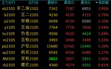 国内商品期货开盘:涨多跌少,苯乙烯涨超3%、豆二等涨超2%
