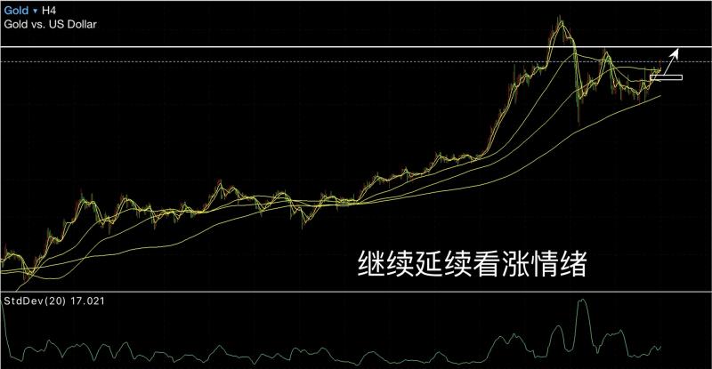 中长期来看,价格止跌日线40日均线位置。短期价格向上破位1976的阻力。并且从1902进行的上涨,经过1976-1910的回调后,创出新高,已经形成了短周期的多头趋势。日线的20日均线位置也从前期的阻力,转化为支撑。横有多长竖有多高,价格经过了8个交易日的横盘,选择出方向后自然运行较为迅猛,极强不回调的拉涨,注意要寻机跟进多单,顺势而为,不猜顶猜底。