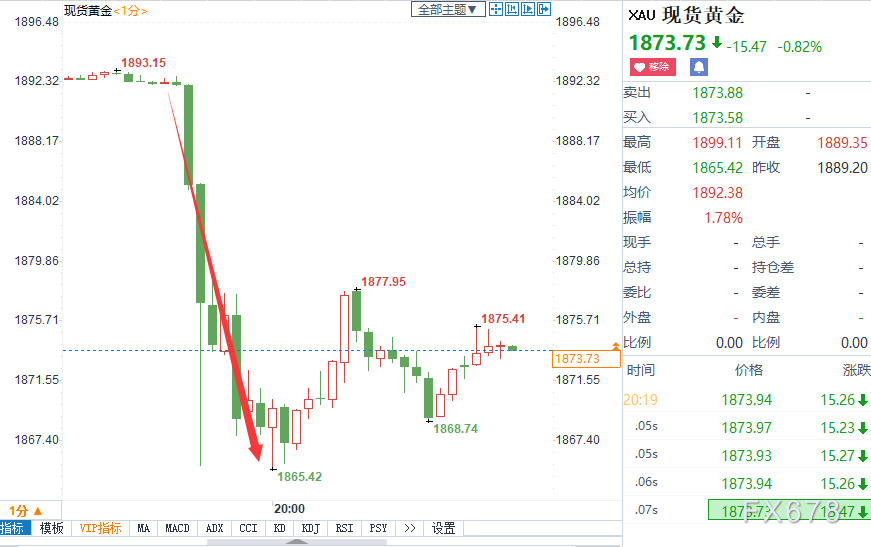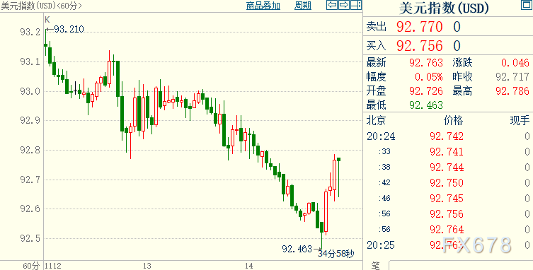 金价盘中创一周高点至1899.11美元/盎司;美元指数则一度下跌0.3%至一周新低92.463。