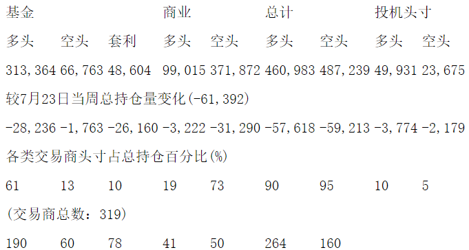 美国商品期货交易委员会(CFTC)最新公布截止7月30日当周COMEX黄金期货分类持仓报告: