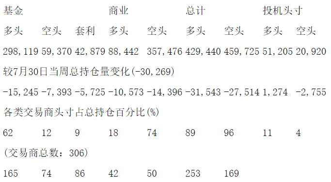 美国商品期货交易委员会(CFTC)最新公布截止8月6日当周COMEX黄金期货分类持仓报告: