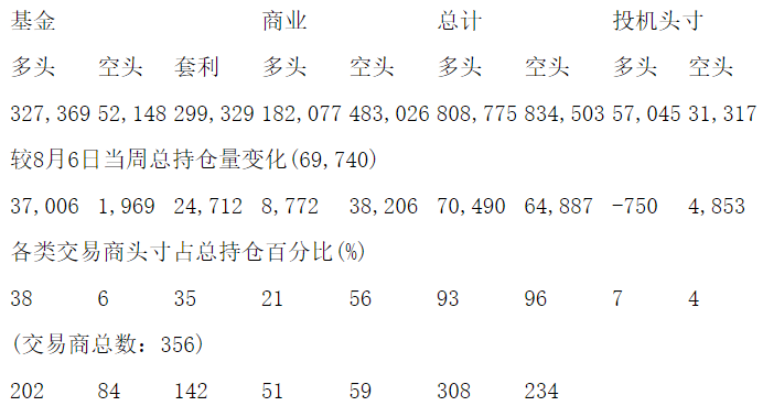 美国商品期货交易委员会(CFTC)最新公布截止8月13日当周COMEX黄金期货和期权分类持仓报告: