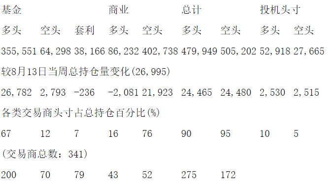 美国商品期货交易委员会(CFTC)最新公布截止8月20日当周COMEX黄金期货分类持仓报告: