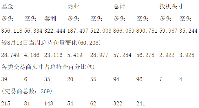 美国商品期货交易委员会(CFTC)最新公布截止8月20日当周COMEX黄金期货和期权分类持仓报告: