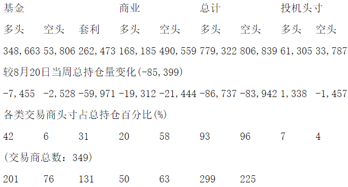 美国商品期货交易委员会(CFTC)最新公布截止8月27日当周COMEX黄金期货和期权分类持仓报告: