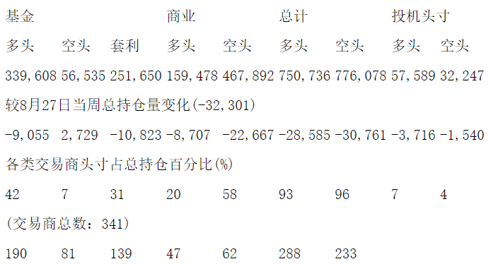 美国商品期货交易委员会(CFTC)最新公布截止9月3日当周COMEX黄金期货和期权分类持仓报告: