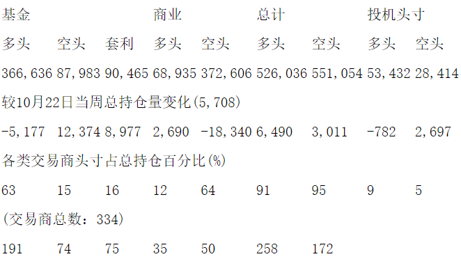 美国商品期货交易委员会(CFTC)最新公布截止10月29日当周COMEX黄金期货分类持仓报告: