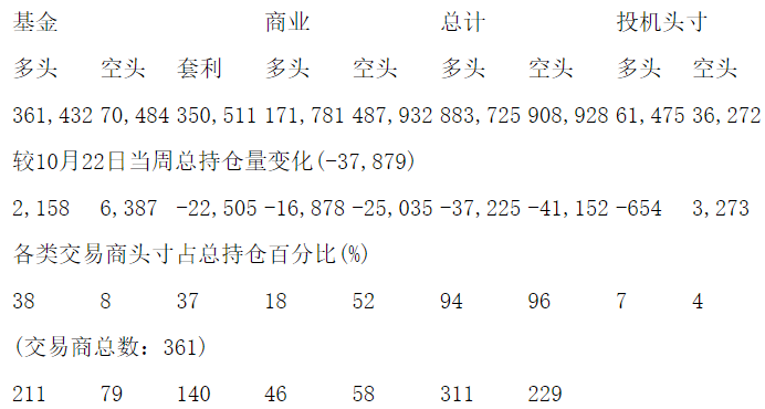 美国商品期货交易委员会(CFTC)最新公布截止10月29日当周COMEX黄金期货和期权分类持仓报告: