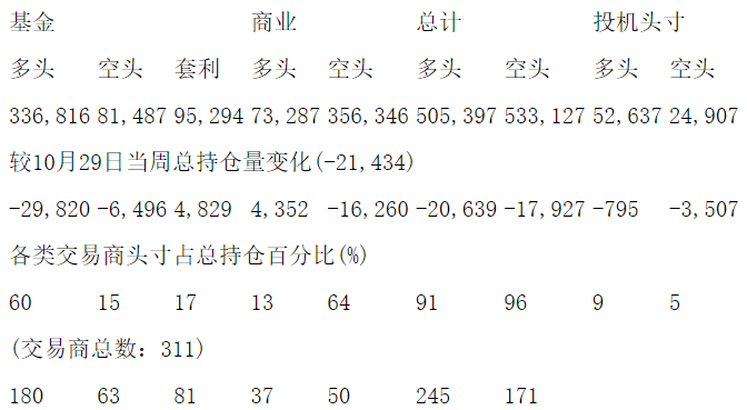 美国商品期货交易委员会(CFTC)最新公布截止11月5日当周COMEX黄金期货分类持仓报告: