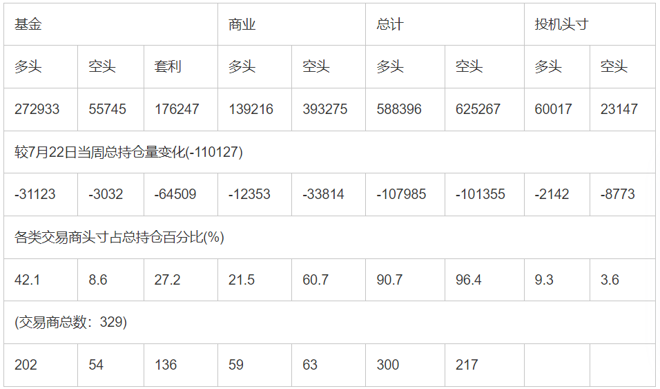 截止7月29日当周COMEX(纽约商品期货交易所)黄金期货和期权分类持仓报告: