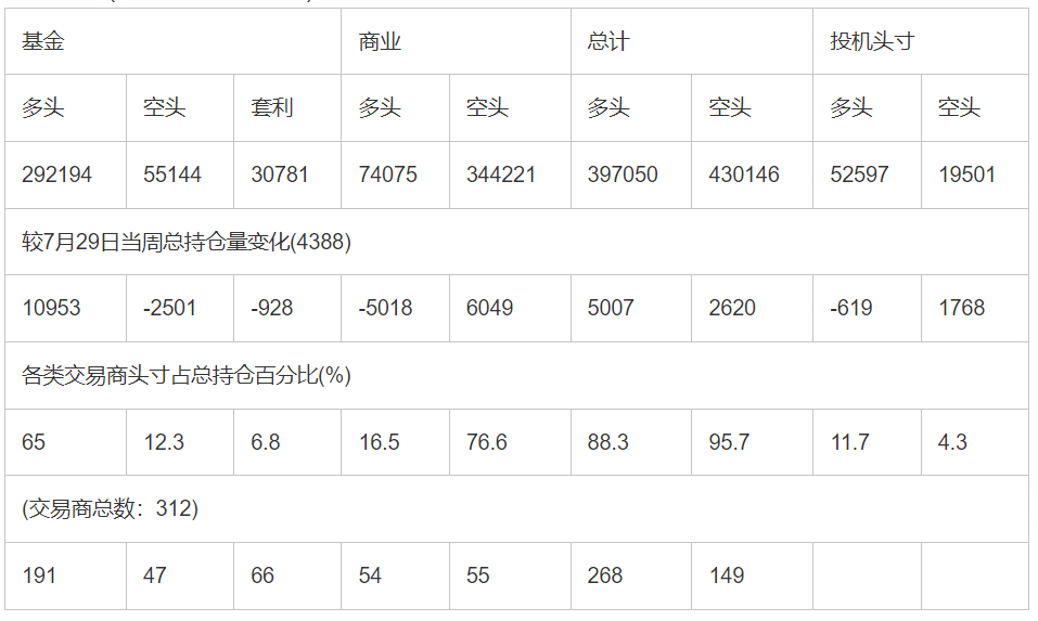 截止8月5日当周COMEX(纽约商品期货交易所)黄金期货分类持仓报告: