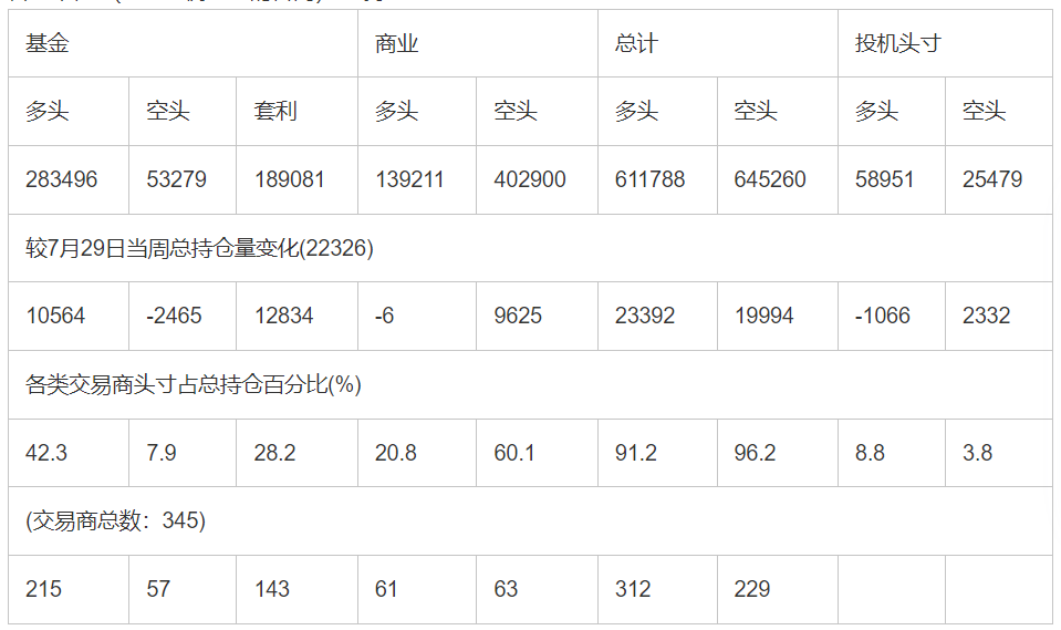 截止8月5日当周COMEX(纽约商品期货交易所)黄金期货和期权分类持仓报告: