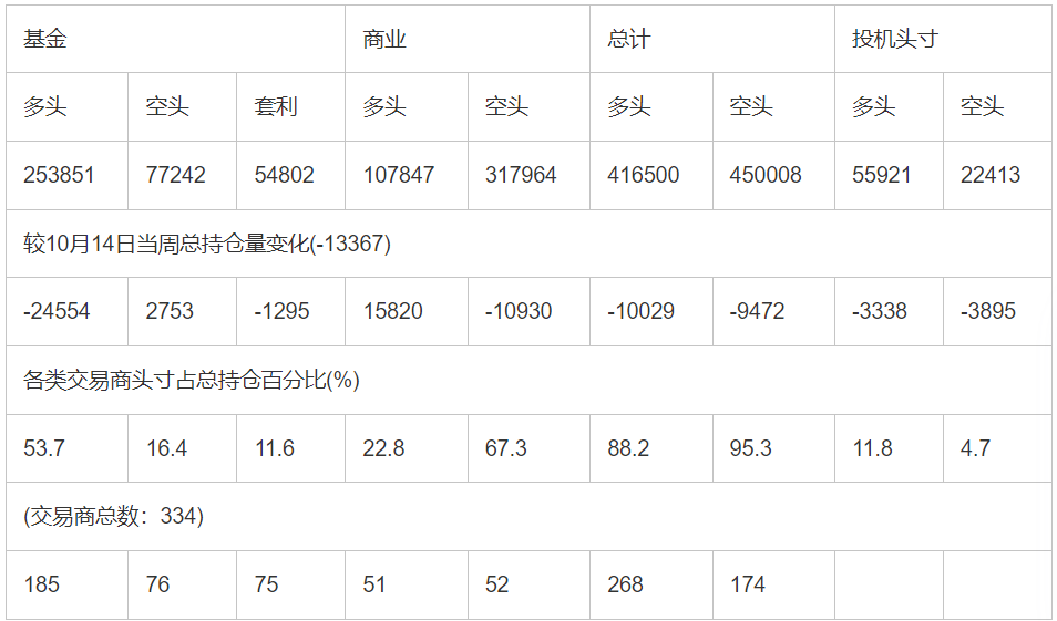 CFTC:截止10月21日当周COMEX(纽约商品期货交易所)黄金期货持仓报告