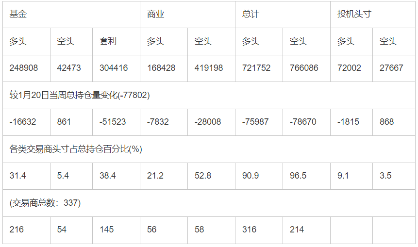 截止1月27日当周COMEX(纽约商品期货交易所)黄金期货和期权分类持仓报告: