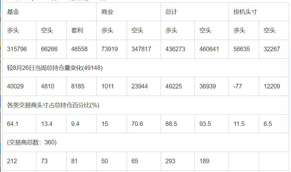 截止9月2日当周COX(纽约商品期货交易所)黄金期货分类持仓报告: 合约单位:(100金衡盎司的合同)总持仓量:492908
