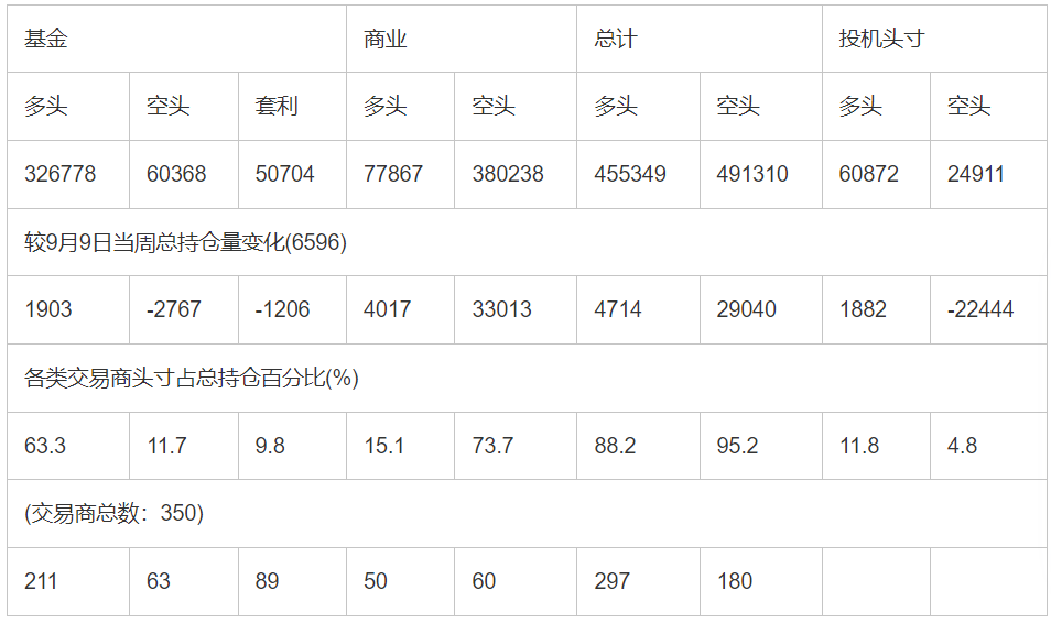 截止9月16日当周COX(纽约商品期货交易所)黄金期货分类持仓报告: 合约单位:(100金衡盎司的合同)总持仓量:516221