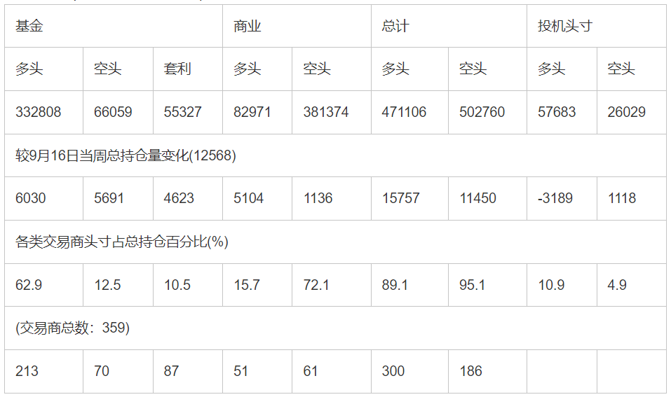 截止9月23日当周COX(纽约商品期货交易所)黄金期货分类持仓报告: 合约单位:(100金衡盎司的合同)总持仓量:528789