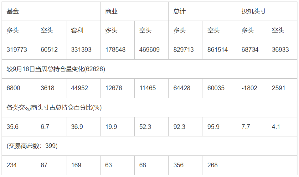 截止9月23日当周COX(纽约商品期货交易所)黄金期货和期权分类持仓报告: 合约单位:(100金衡盎司的合同)总持仓量:898447