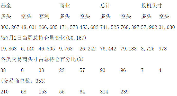 美国商品期货交易委员会(CFTC)最新公布截止7月9日当周COX黄金期货和期权分类持仓报告: 合约单位:100金衡盎司总持仓量:799427