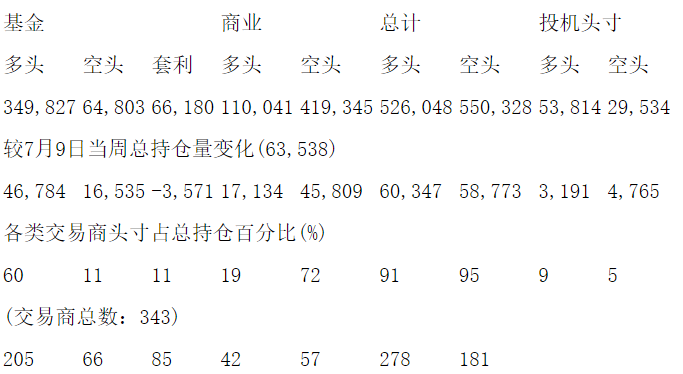 美国商品期货交易委员会(CFTC)最新公布截止7月16日当周COX黄金期货分类持仓报告: 合约单位:100金衡盎司总持仓量:579862