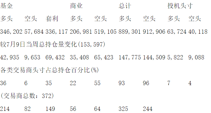 美国商品期货交易委员会(CFTC)最新公布截止7月16日当周COX黄金期货和期权分类持仓报告: 合约单位:100金衡盎司总持仓量:953024